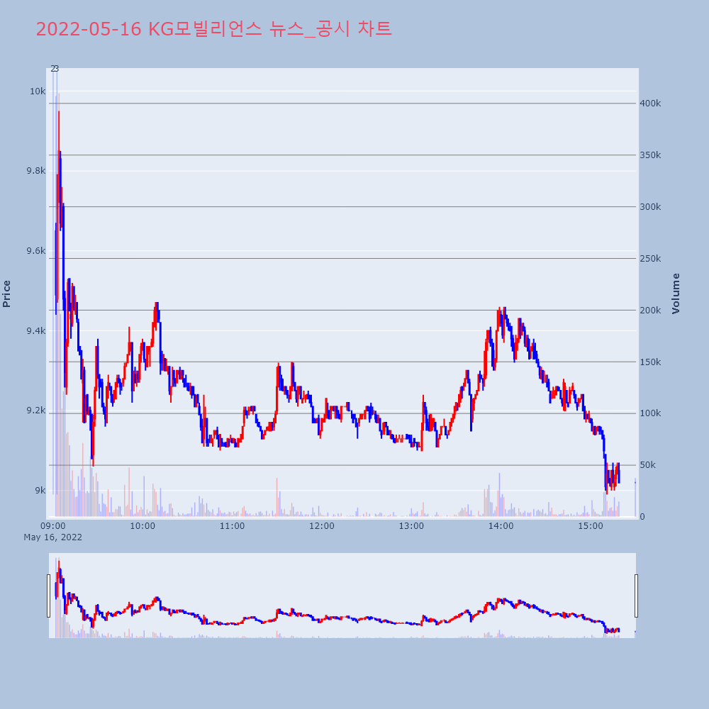 | 2 | KG모빌리언스, 0.00% VI 발동KG모빌리언스(046440)가 VI가 발동했다. 현재 | 조선경제 | KG모빌리언스 | 2022-05-16 09:00:08 |