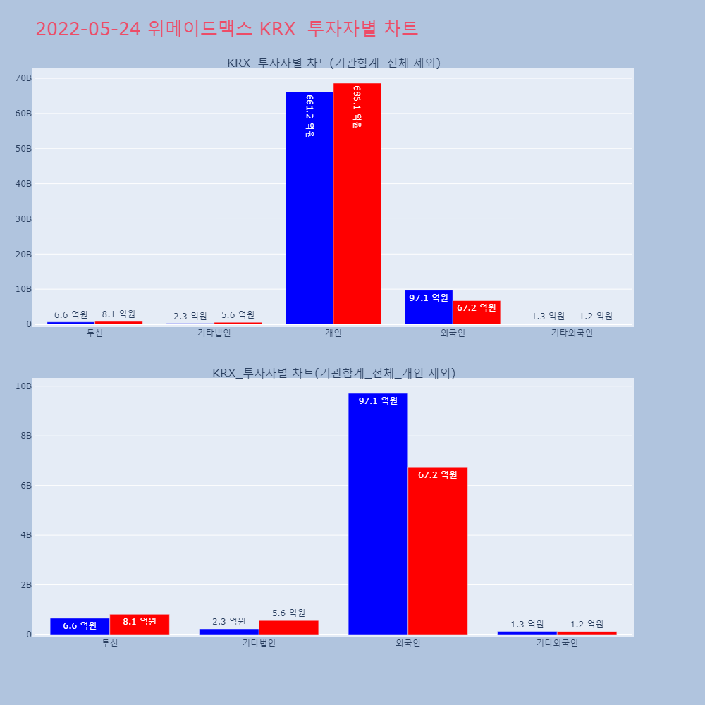 | 개인 | 2,271,877 | 2,378,577 | 106,700 | 35,856,075,700 | 37,586,994,600 | 1,730,918,900 |