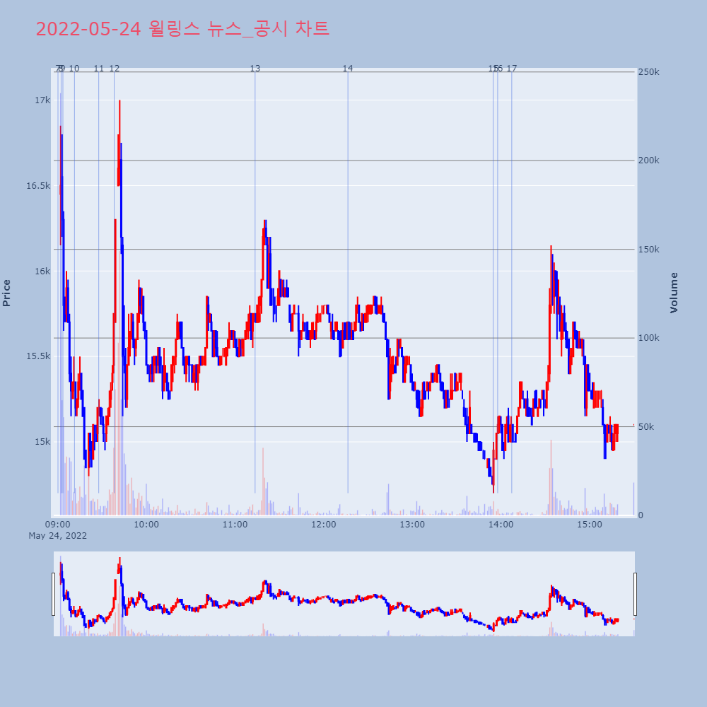 | 13 | 윌링스, 최대주주 변경 소식에 16% 넘게 급등윌링스 주가가 최대주주 변경 소식에 24일 장중 16 | 한경/증권 | 윌링스 | 2022-05-24 11:13:38 |