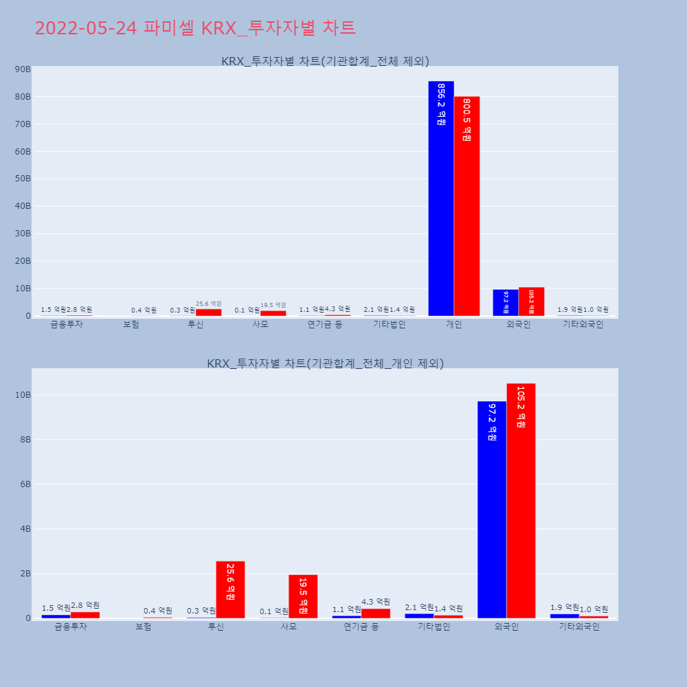| 투자기관 | 거래량_매도 | 거래량_매수 | 거래량_순매수 | 거래대금_매도 | 거래대금_매수 | 거래대금_순매수 |