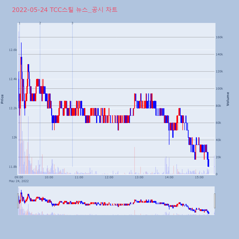 | 2 | [특징주] TCC스틸, 원통형 배터리 포장재 수요 확대 기대… 장중 7%↑[아시아경제 이민지 기자]TCC스틸이 실적 상승 전망에 | 아시아경제 | TCC스틸 | 2022-05-24 09:42:25 |