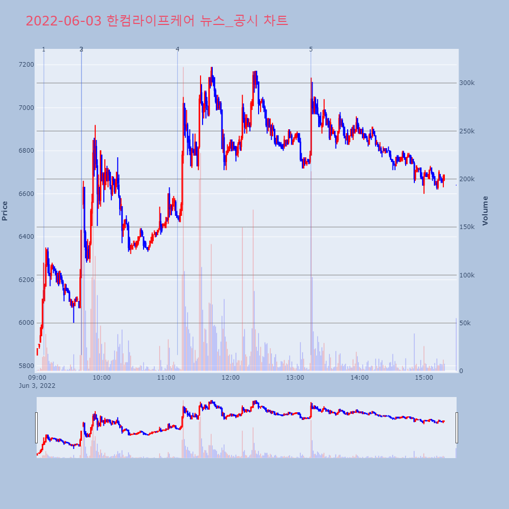 | 4 | [강세 토픽] 화재 테마, 한컴라이프케어 +11.88%, 파라텍 +10.91%[화재] 테마가 강세다. 전일 대비 2.66% 상승세이 | 조선경제 | 한컴라이프케어 | 2022-06-03 11:10:35 |