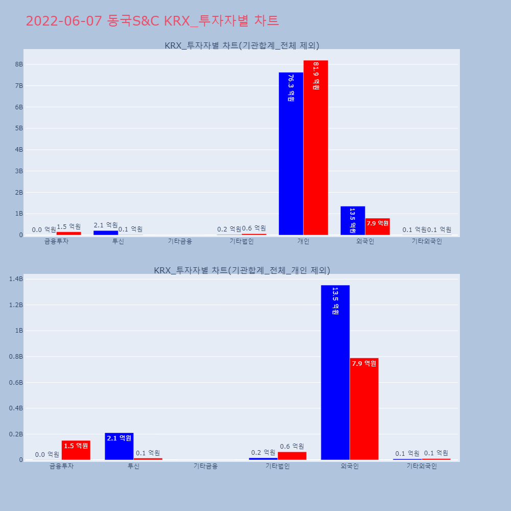 | 투자기관 | 거래량_매도 | 거래량_매수 | 거래량_순매수 | 거래대금_매도 | 거래대금_매수 | 거래대금_순매수 |