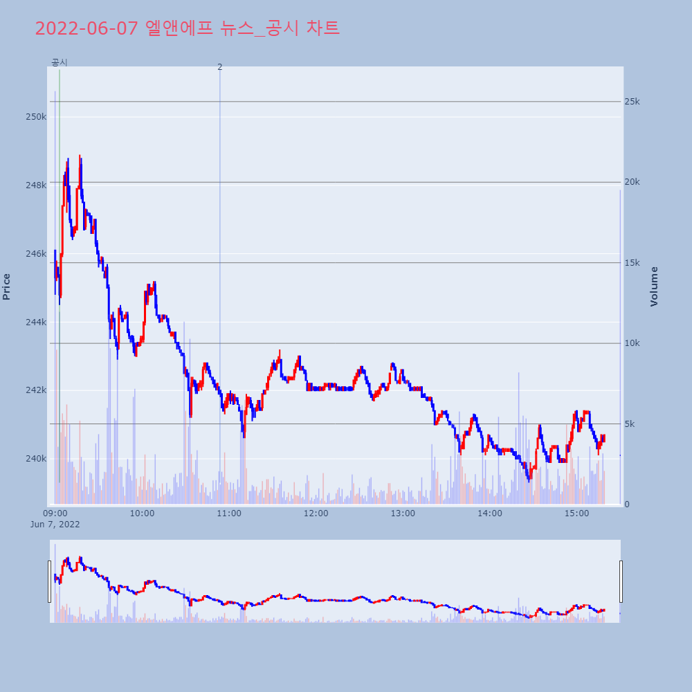 | 2 | [IR일정] 엘앤에프, 컨퍼런스 참석엘앤에프, 컨퍼런스 참석일정 : 2022-06-08장소 | IR GO | 엘앤에프 | 2022-06-07 10:53:46 |