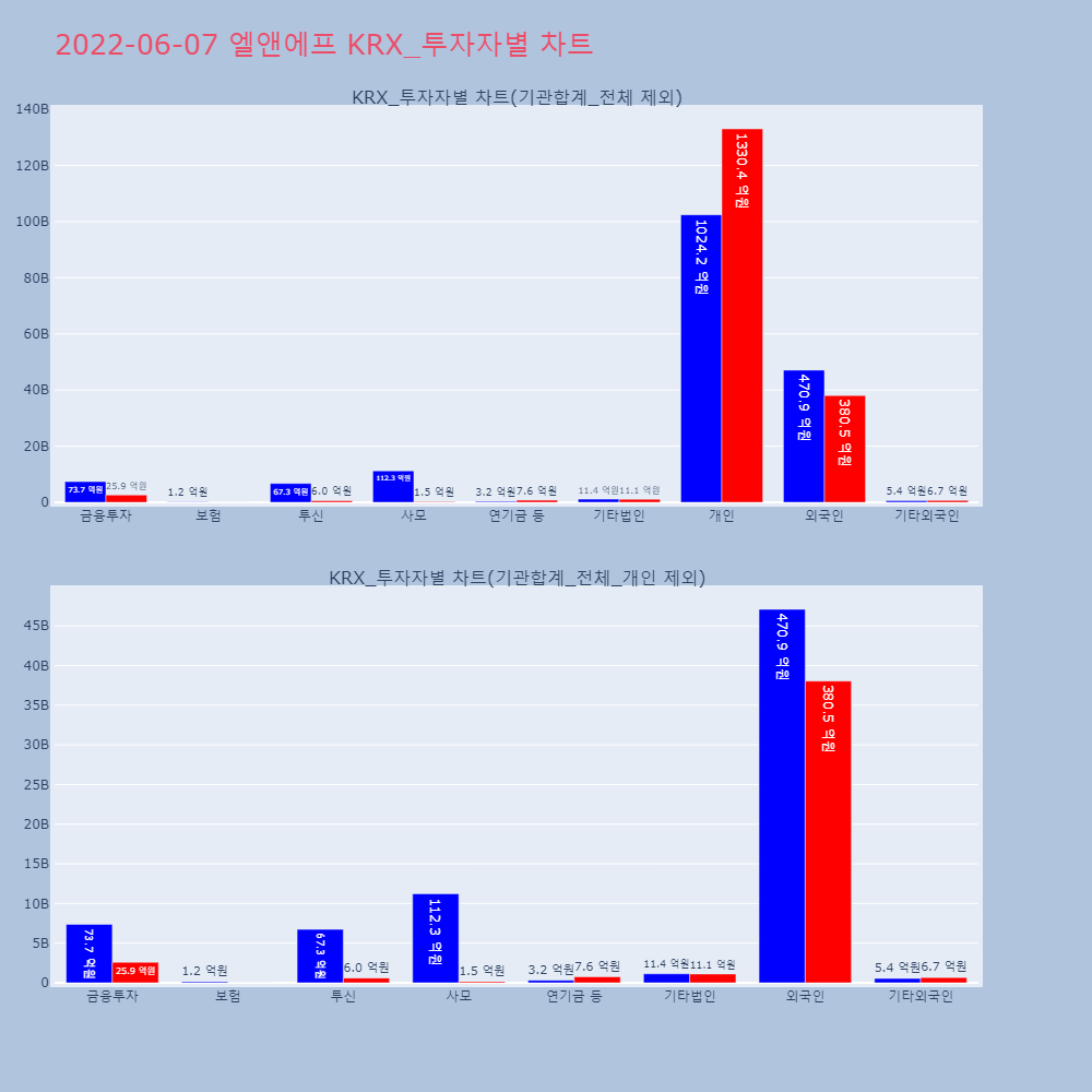 | 투자기관 | 거래량_매도 | 거래량_매수 | 거래량_순매수 | 거래대금_매도 | 거래대금_매수 | 거래대금_순매수 |