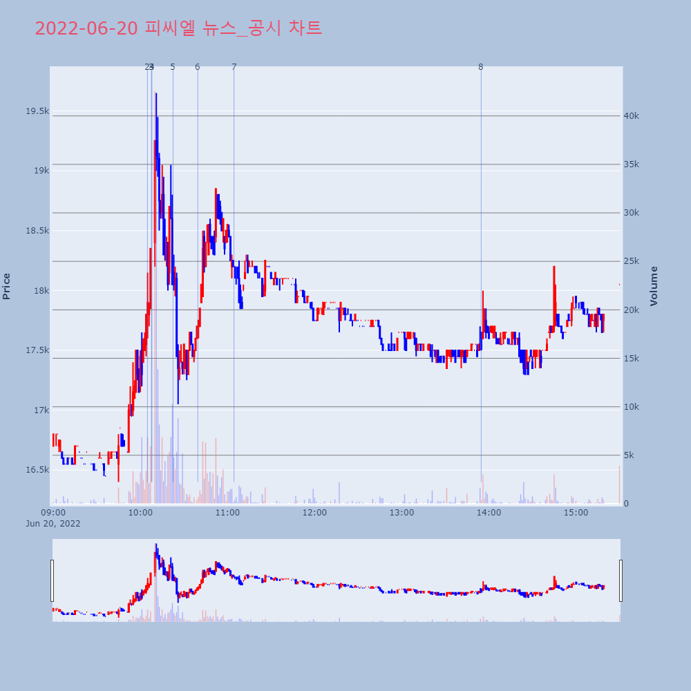 | 8 | [특징주] 피씨엘, 6700억 규모 모로코 국가 보건 프로젝트 참여에↑ 제목 : [특징주] 피씨엘, 6700억 규모 모로코 국 | 인포스탁 | 피씨엘 | 2022-06-20 13:54:45 |