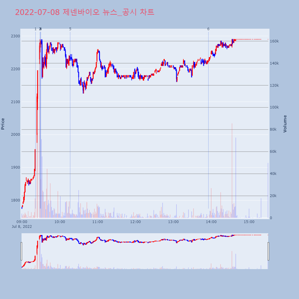 | 4 | [이시각 상한가] 제넨바이오(▲525) - 8일 오전 9시29분[이투데이/e2BOT 기자(e2bot@etoday.co | 이투데이 | 제넨바이오 | 2022-07-08 09:30:03 |