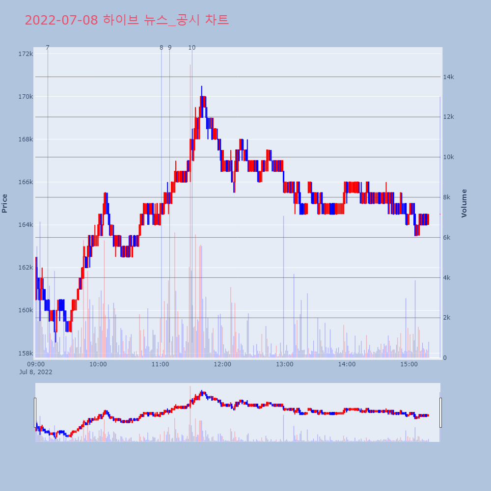 | 8 | [리포트 브리핑]하이브, 'Time to Re-enter' 목표가 250,000원 - 현대차증[서울=뉴스핌] 로보뉴스 = 현대차증권에서 08일 하이 | 뉴스핌 | 하이브 | 2022-07-08 11:01:11 |