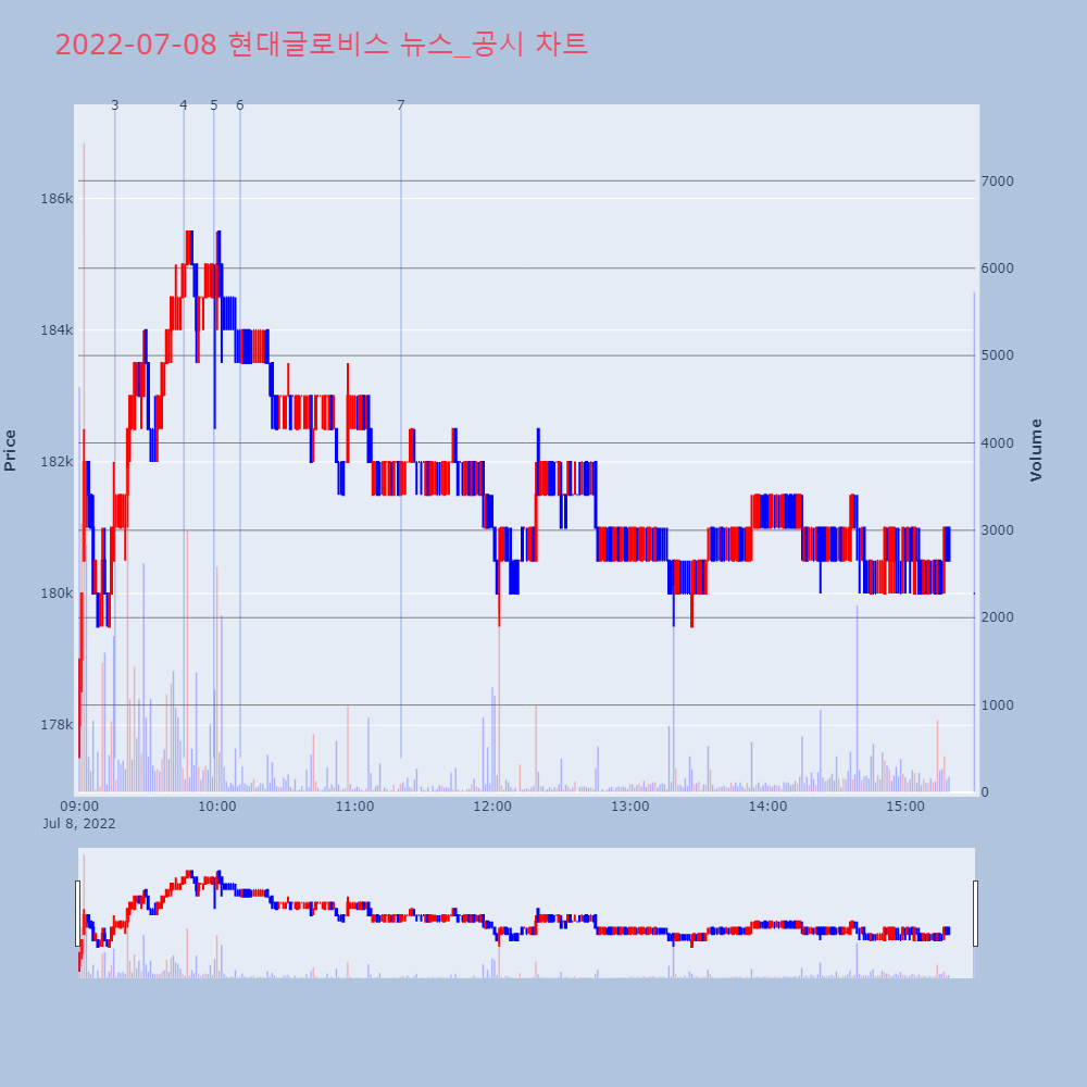 | 1 | [강세 토픽] 택배와 종합물류 테마, 현대글로비스 +5.41%, LX인터내셔널 +2[택배와 종합물류] 테마가 강세다. 전일 대비 2.18 | 조선경제 | 현대글로비스 | 2022-07-08 09:45:32 |
