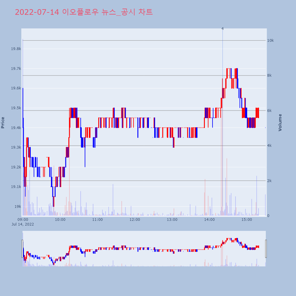 | 2 | 이오플로우 수주공시 - 이오패치 생산라인 구축을 위한 장비 및 기술지원 07월 13일 이오플로우(294090)는 수주공시를 | 한경/증권 | 이오플로우 | 2022-07-13 16:15:30 |