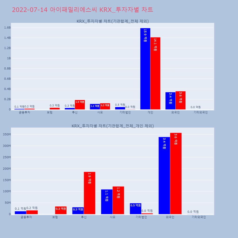 | 투자기관 | 거래량_매도 | 거래량_매수 | 거래량_순매수 | 거래대금_매도 | 거래대금_매수 | 거래대금_순매수 |