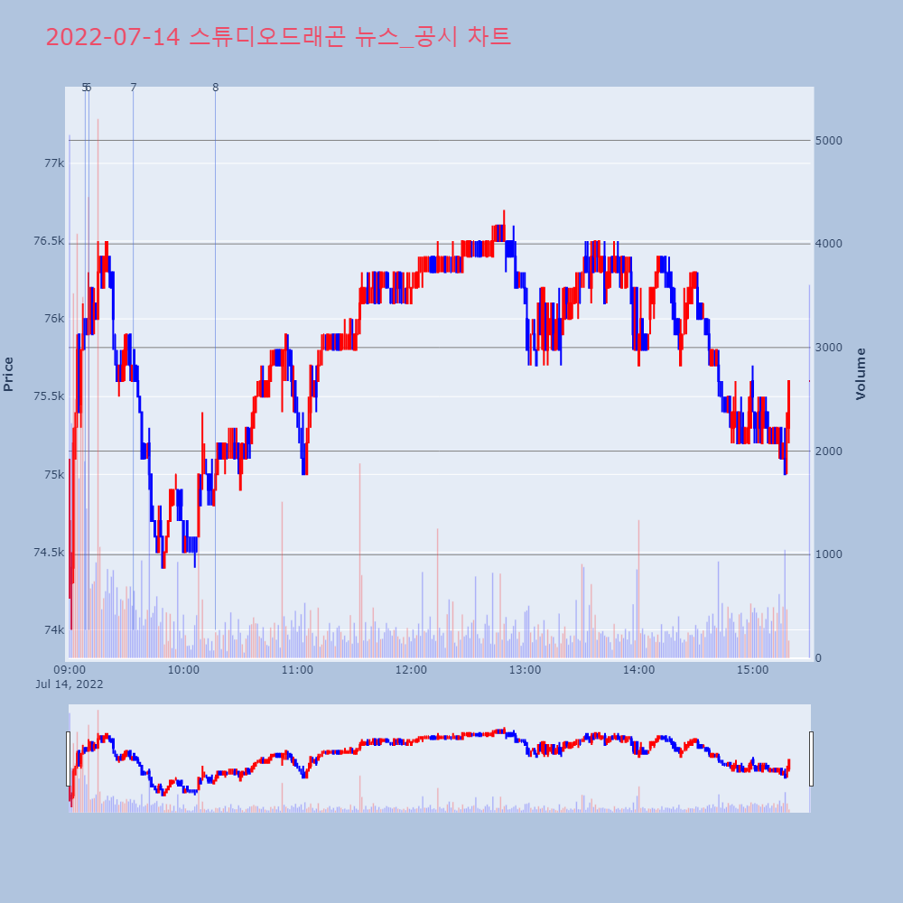 | 8 | [장중수급포착] 스튜디오드래곤, 외국인/기관 동시 순매수… 주가 +1.63% [서울=뉴스핌] 로보뉴스 = 14일 10시 15분 현재 | 뉴스핌 | 스튜디오드래곤 | 2022-07-14 10:16:51 |
