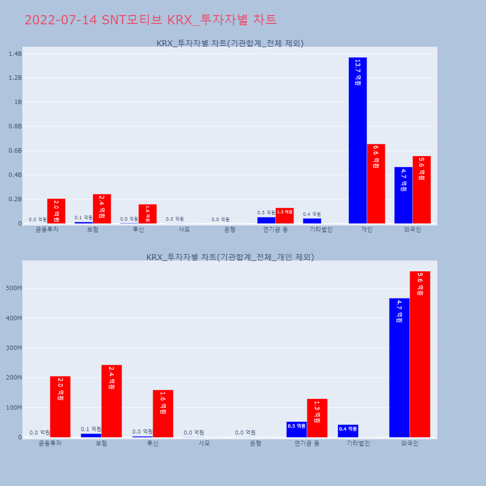 | 개인 | 50,974 | 43,859 | -7,115 | 1,506,239,100 | 1,290,151,800 | -216,087,300 |