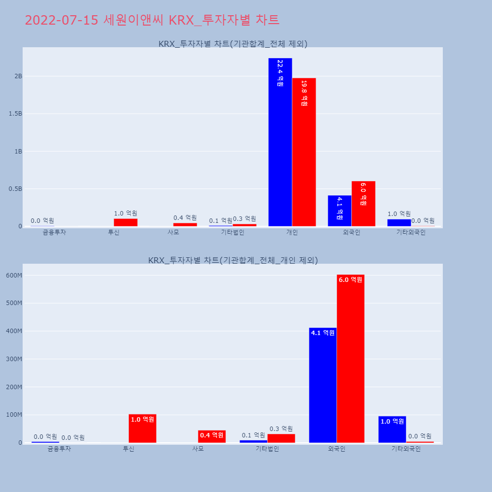 | 투자기관 | 거래량_매도 | 거래량_매수 | 거래량_순매수 | 거래대금_매도 | 거래대금_매수 | 거래대금_순매수 |