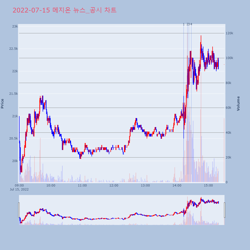 | 4 | 메지온, +14.83% VI 발동메지온(140410)이 VI가 발동했다. 전일 대비 1 | 조선경제 | 메지온 | 2022-07-15 14:27:34 |