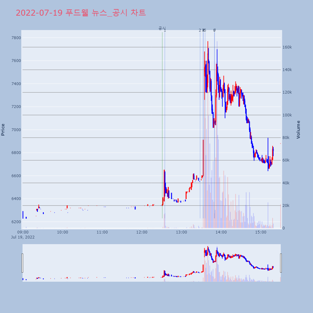 | 4 | 푸드웰, +9.68% VI 발동푸드웰(005670)이 VI가 발동했다. 전일 대비 9 | 조선경제 | 푸드웰 | 2022-07-19 13:33:06 |