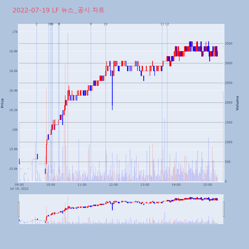 | 8 | [장중수급포착] LF, 외국인 9일 연속 순매수행진... 주가 +2.55% [서울=뉴스핌] 로보뉴스 = 19일 10시 15분 현재 | 뉴스핌 | LF | 2022-07-19 10:16:38 |