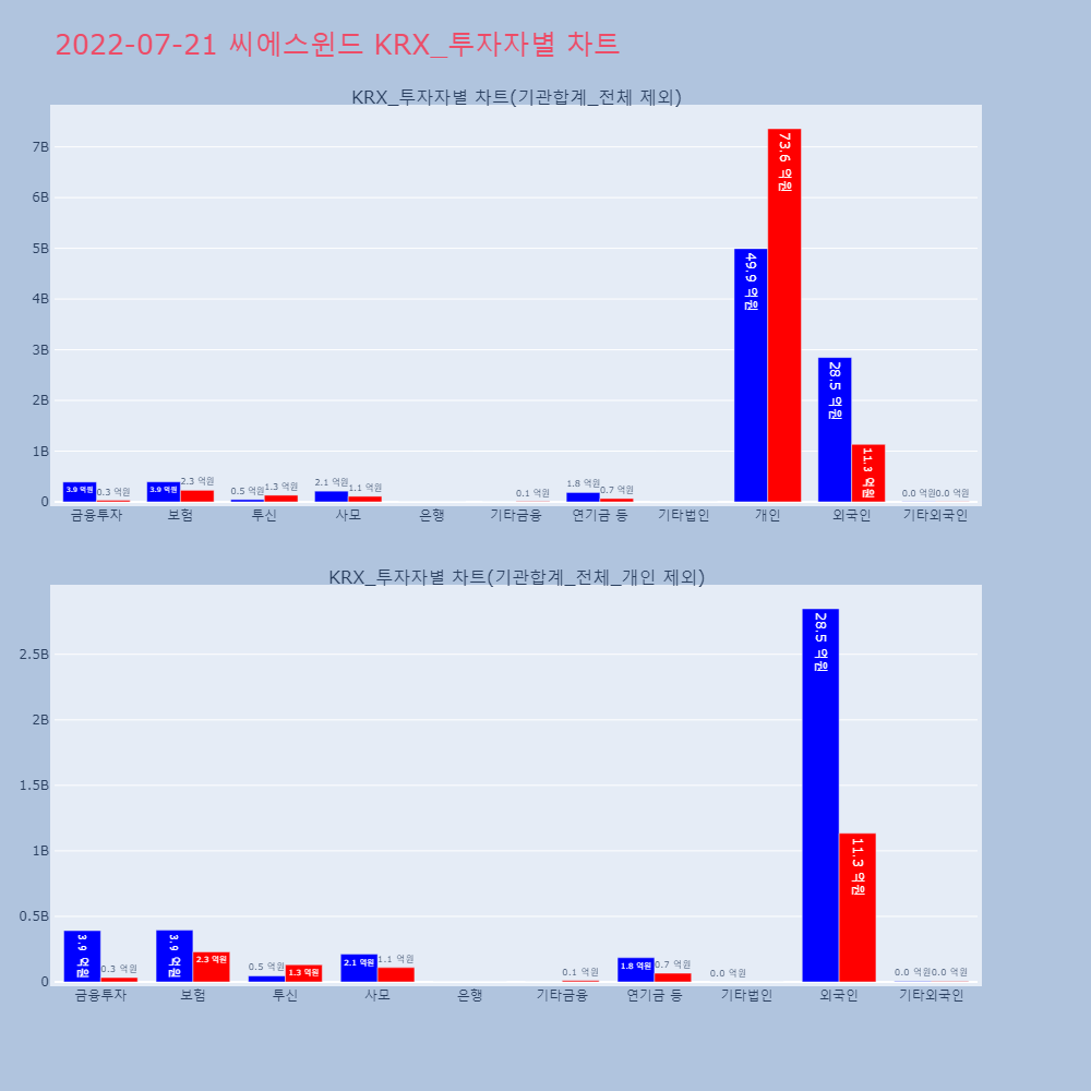 | 외국인 | 59,088 | 23,590 | -35,498 | 2,847,538,500 | 1,133,907,400 | -1,713,631,100 |