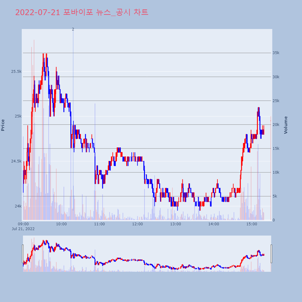 | 2 | [장중수급포착] 포바이포, 외국인/기관 동시 순매수… 주가 +1.63% [서울=뉴스핌] 로보뉴스 = 21일 10시 15분 현재 | 뉴스핌 | 포바이포 | 2022-07-21 10:18:38 |