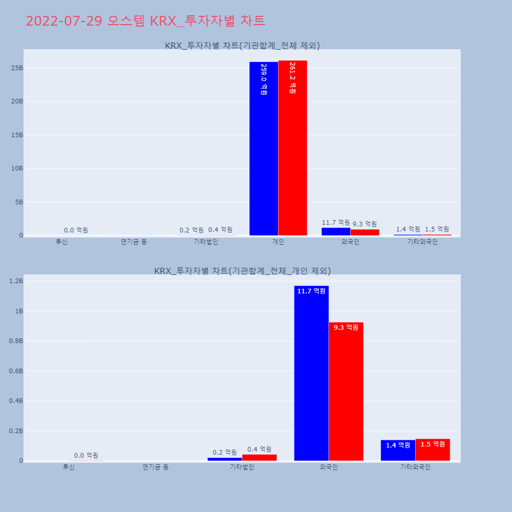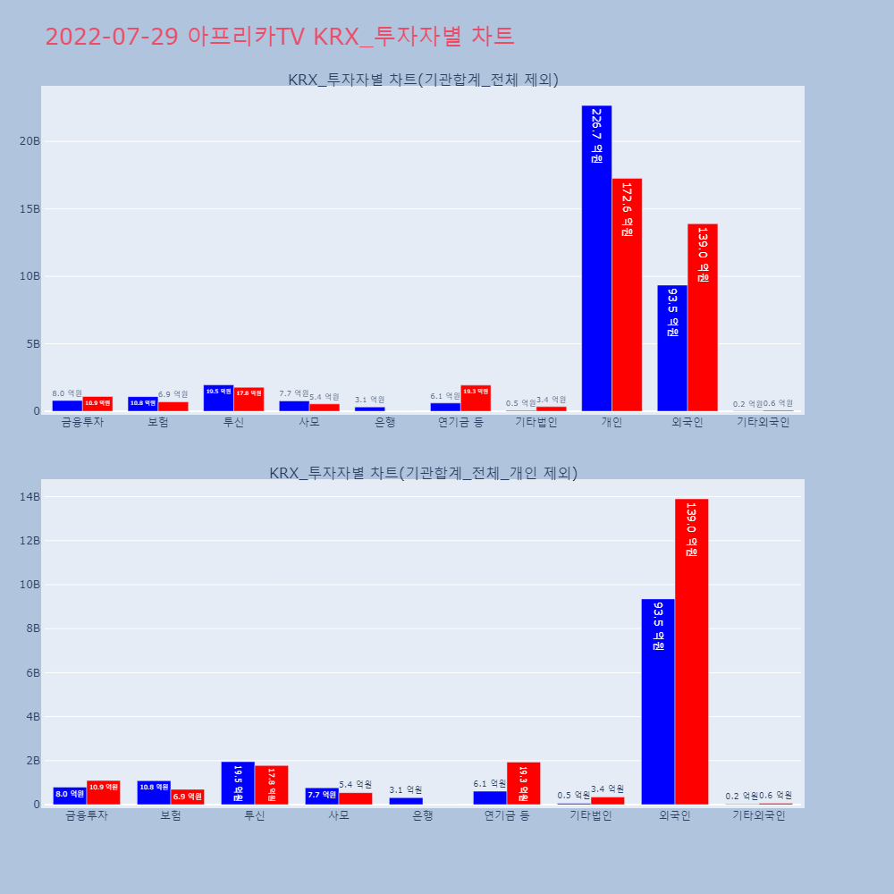 | 개인 | 264,497 | 201,254 | -63,243 | 22,666,582,100 | 17,258,977,000 | -5,407,605,100 |