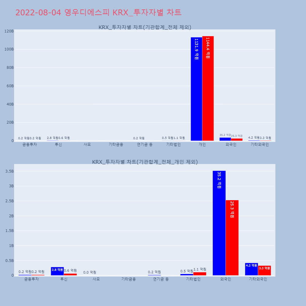 | 투자기관 | 거래량_매도 | 거래량_매수 | 거래량_순매수 | 거래대금_매도 | 거래대금_매수 | 거래대금_순매수 |