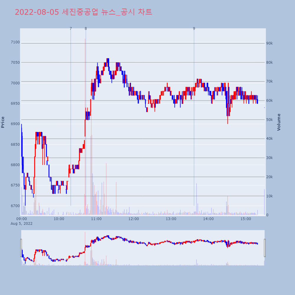 | 9 | [특징주] 세진중공업, 현대중공업 납품량 증가 전망… 4%↑ 제목 : [특징주] 세진중공업, 현대중공업 납품량 증가 | 인포스탁 | 세진중공업 | 2022-08-05 13:37:00 |