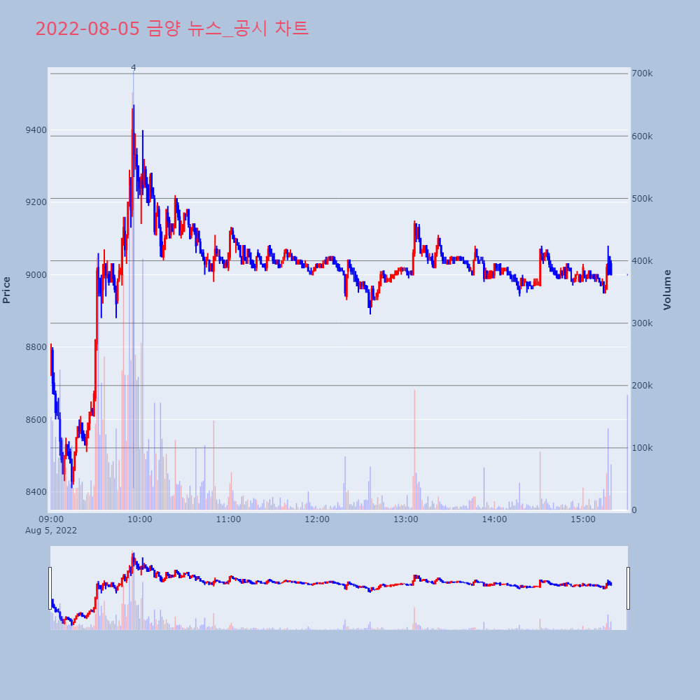 | 4 | (주)금양 (예고)단기과열종목(3거래일 단일가매매) 지정예고 | KOSCOM | 2022.07.26 |