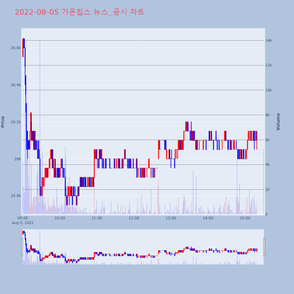 | 3 | (주)가온칩스 [투자주의]스팸관여과다종목 | KOSCOM | 2022.06.16 |