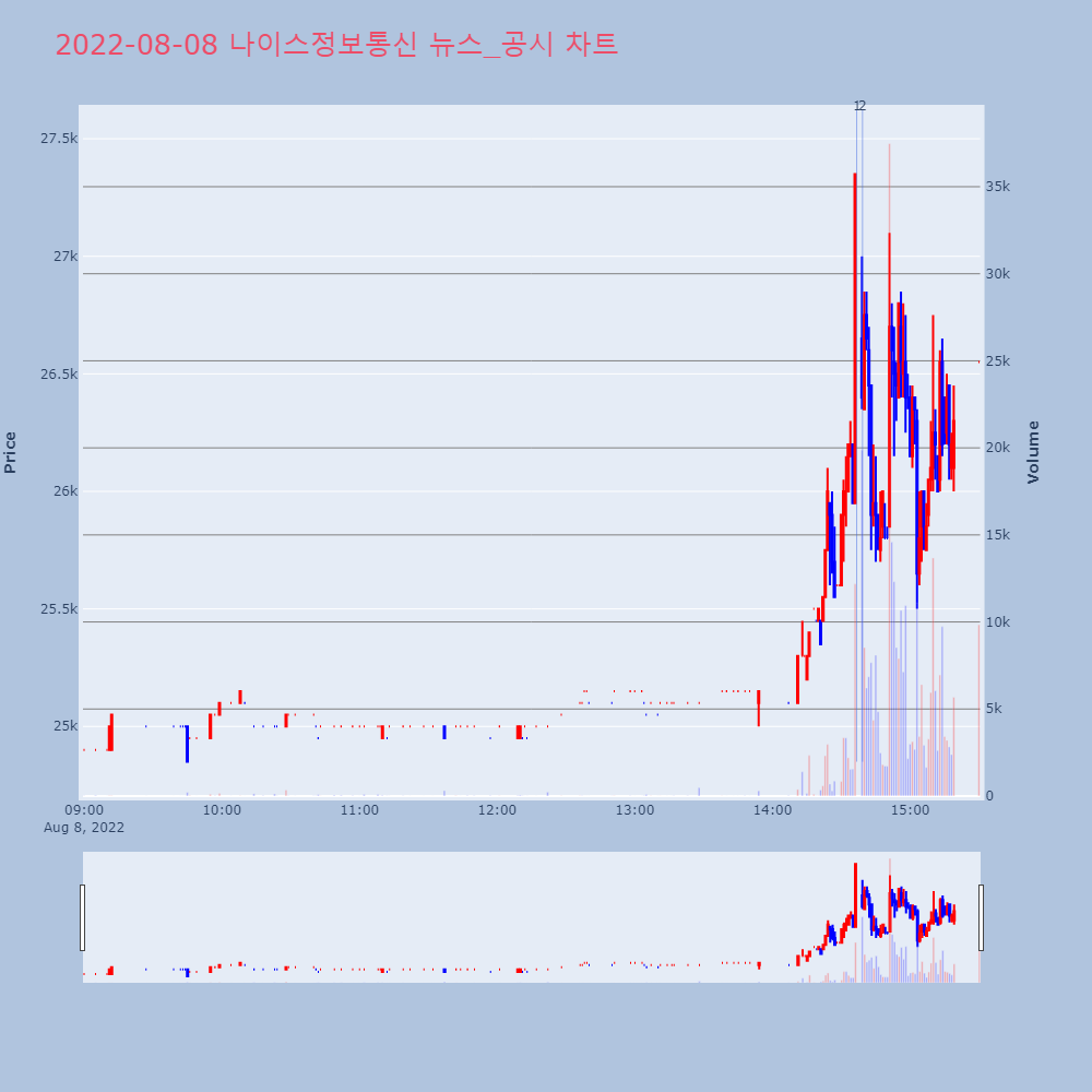 | 1 | 나이스정보통신, +8.63% VI 발동나이스정보통신이 VI가 발동했다. 전일 대비 8.63% | 조선경제 | 나이스정보통신 | 2022-08-08 14:36:43 |