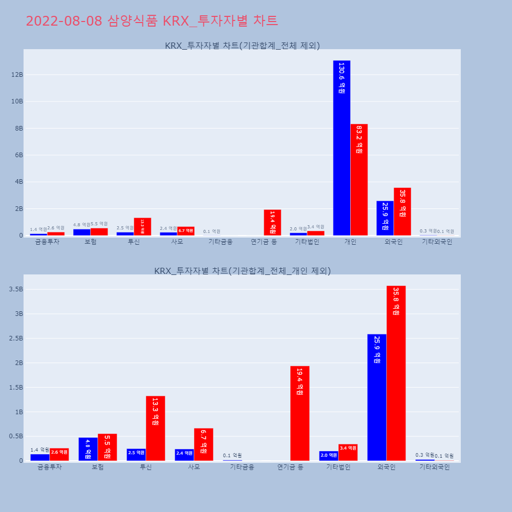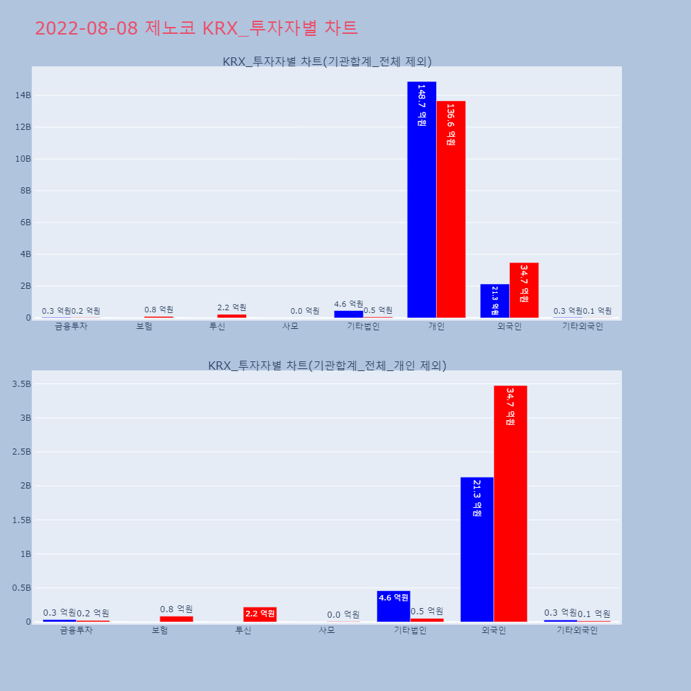 | 외국인 | 84,903 | 64,001 | -20,902 | 2,233,622,750 | 1,679,940,100 | -553,682,650 |