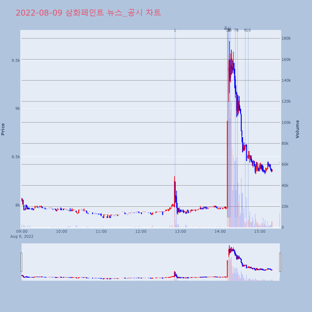 7 | [특징주] 삼화페인트, 영업이익 1562% 급증에 19%대 급등 제목 : [특징주] 삼화페인트, 영업이익 1562% 급 | 인포스탁 | 삼화페인트 | 2022-08-09 14:23:00 |