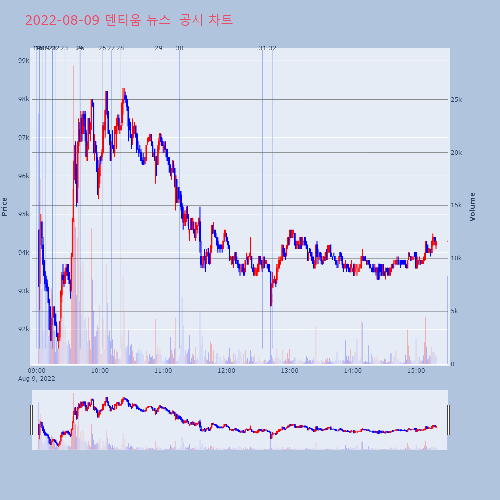 14 | 덴티움, 0.00% VI 발동덴티움이 VI가 발동했다. 현재 85,800원에 거래되 | 조선경제 | 덴티움 | 2022-08-09 09:00:07 |
