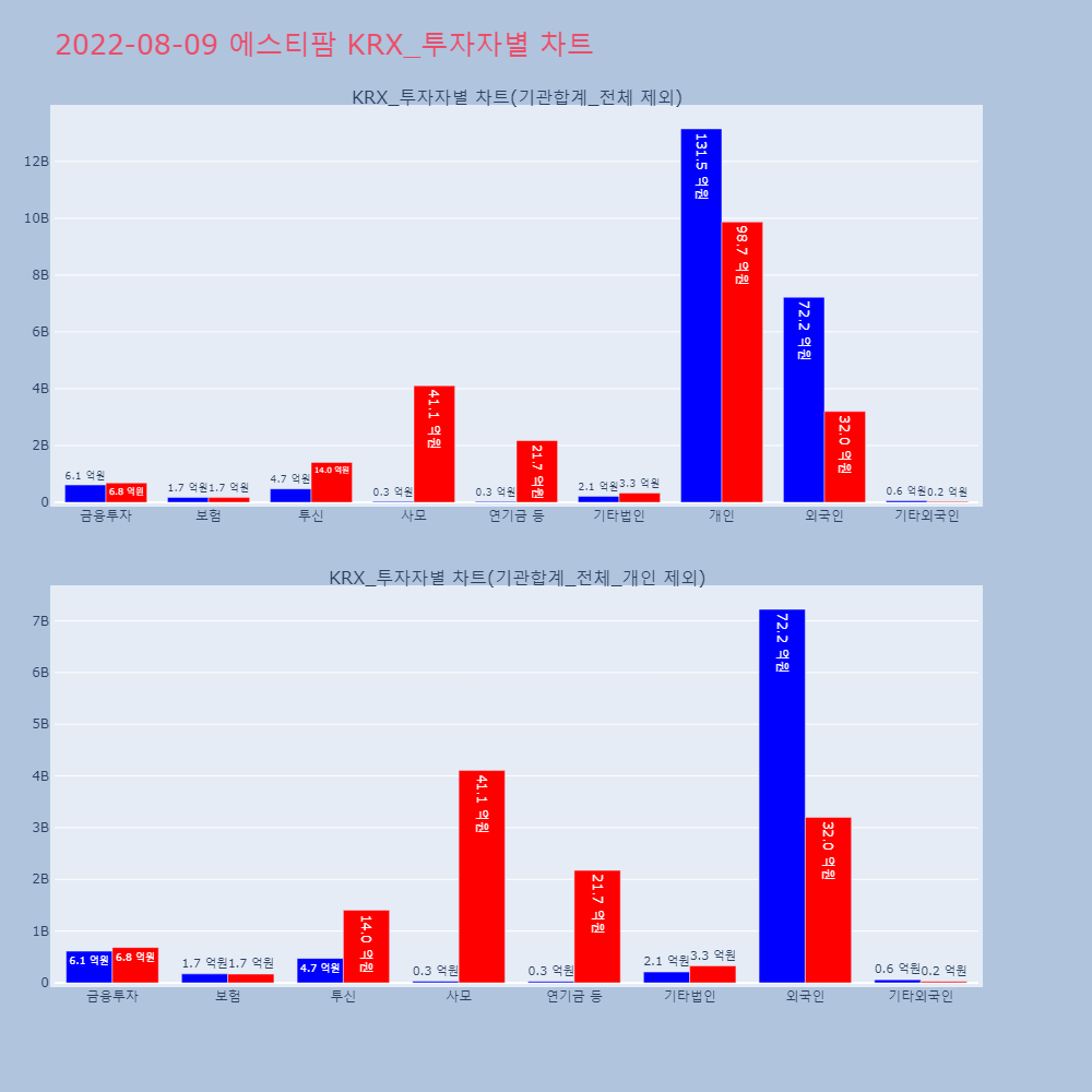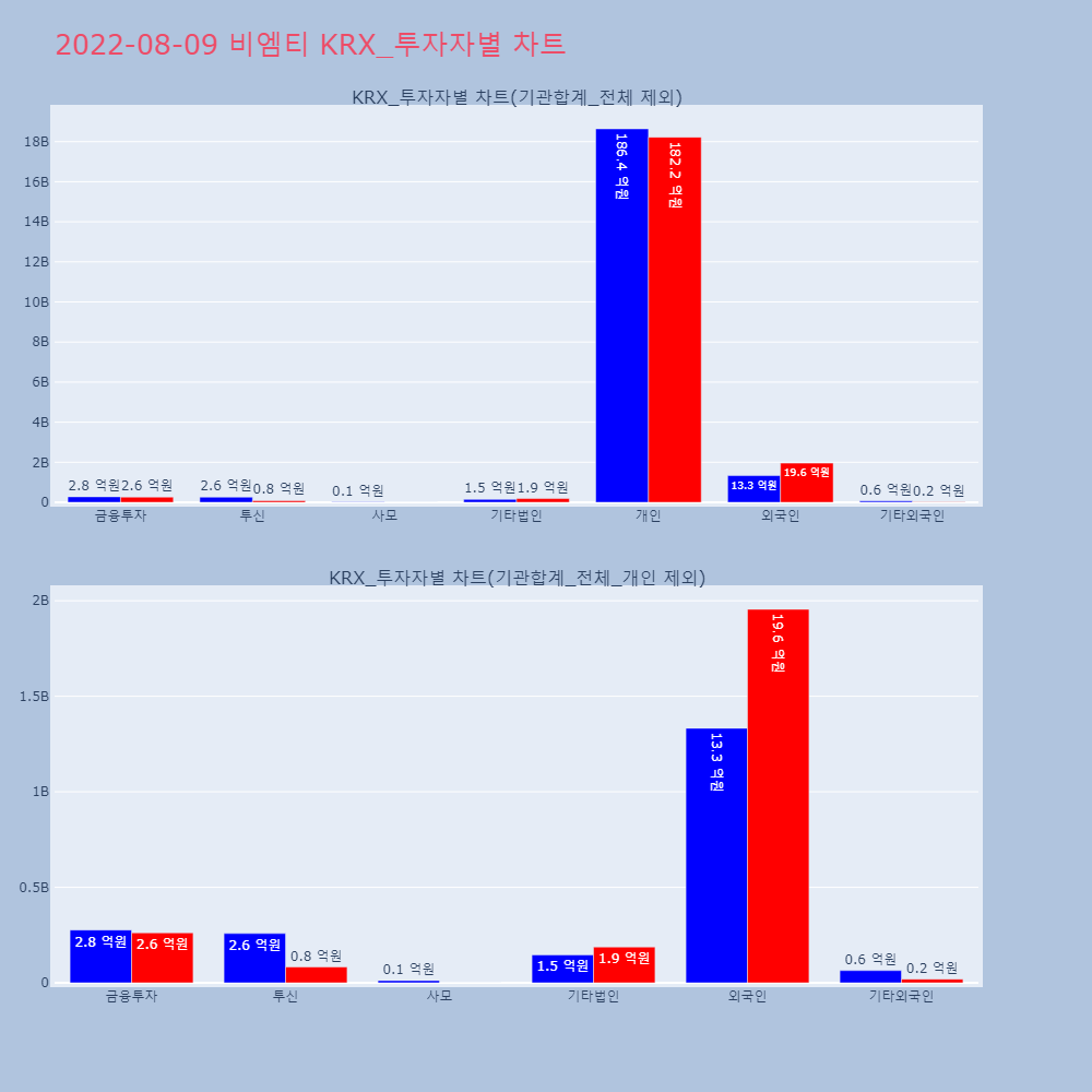 | 개인 | 331,606 | 262,459 | -69,147 | 22,874,981,200 | 18,093,826,900 | -4,781,154,300 |