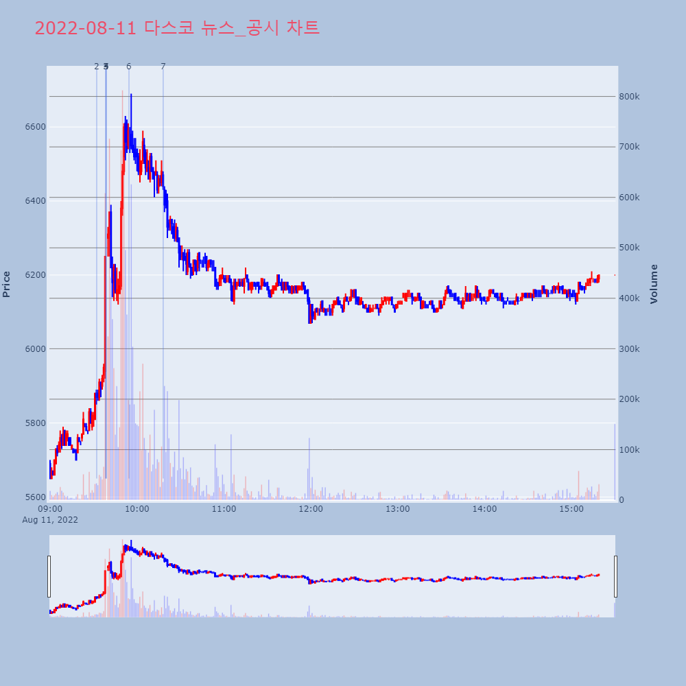 | 5 | 다스코, +12.21% VI 발동다스코가 VI가 발동했다. 전일 대비 12.21% 상승 | 조선경제 | 다스코 | 2022-08-11 09:38:50 |