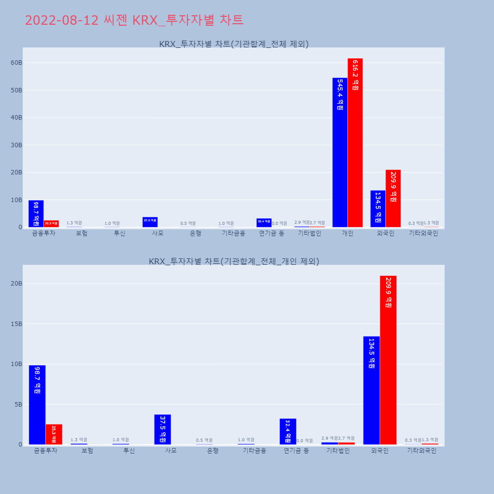 | 투자기관 | 거래량_매도 | 거래량_매수 | 거래량_순매수 | 거래대금_매도 | 거래대금_매수 | 거래대금_순매수 |