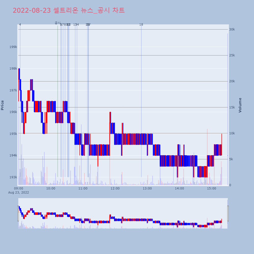 | 20 | 셀트리온, 유플라이마·휴미라 상호교환성 유럽 3상 신청 제목 : 셀트리온, 유플라이마·휴미라 상호교환성 유럽 | 인포스탁 | 셀트리온 | 2022-08-23 17:14:00 |