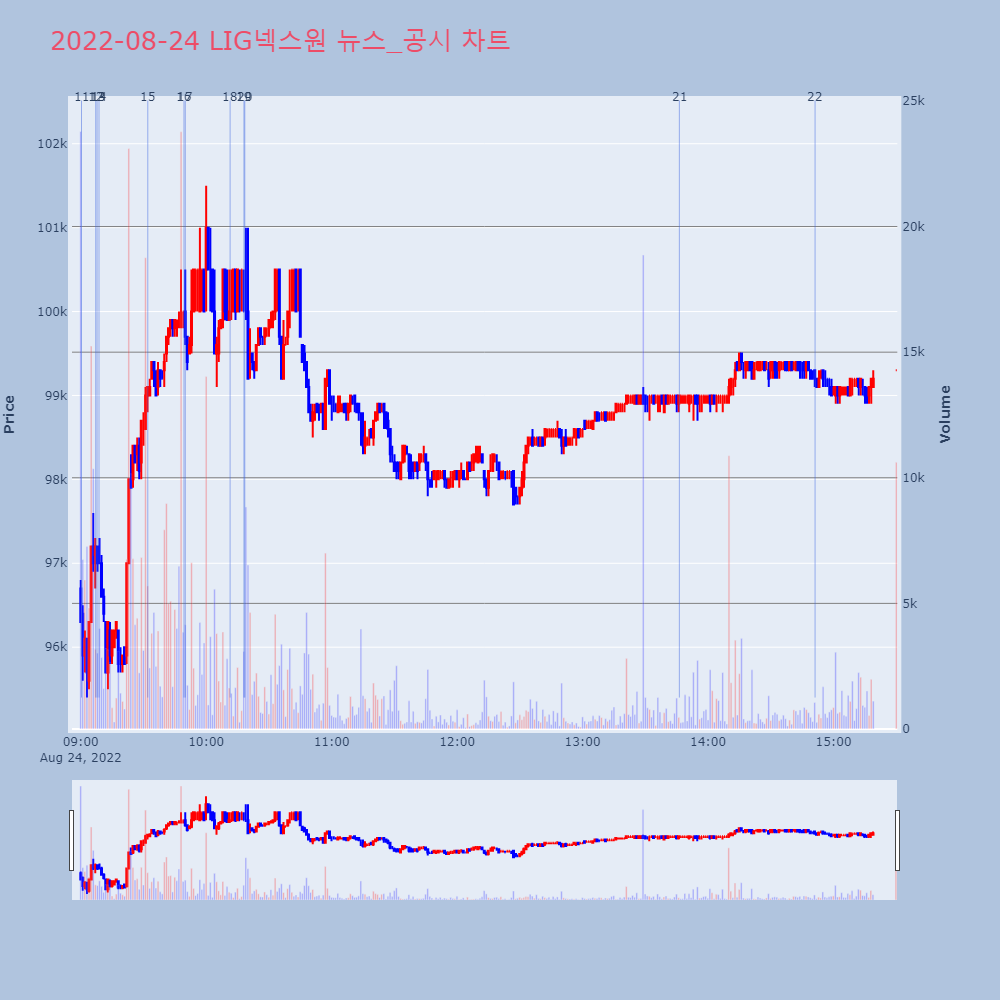 | 17 | [특징주] LIG넥스원, 수출 비중·수주 잔고 증가에 '신고가'… 6%↑ 제목 : [특징주] LIG넥스원, 수출 비중·수주 잔고 | 인포스탁 | LIG넥스원 | 2022-08-24 09:50:01 |