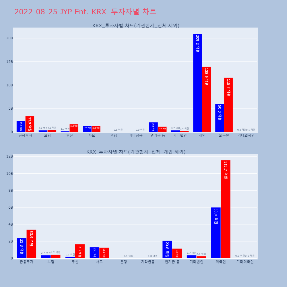 | 5 | [장중수급포착] JYP Ent., 외국인 6일 연속 순매수행진... 주가 +2.15% [서울=뉴스핌] 로보뉴스 = 25일 10시 15분 현재 | 뉴스핌 | JYP Ent. | 2022-08-25 10:21:18 |
