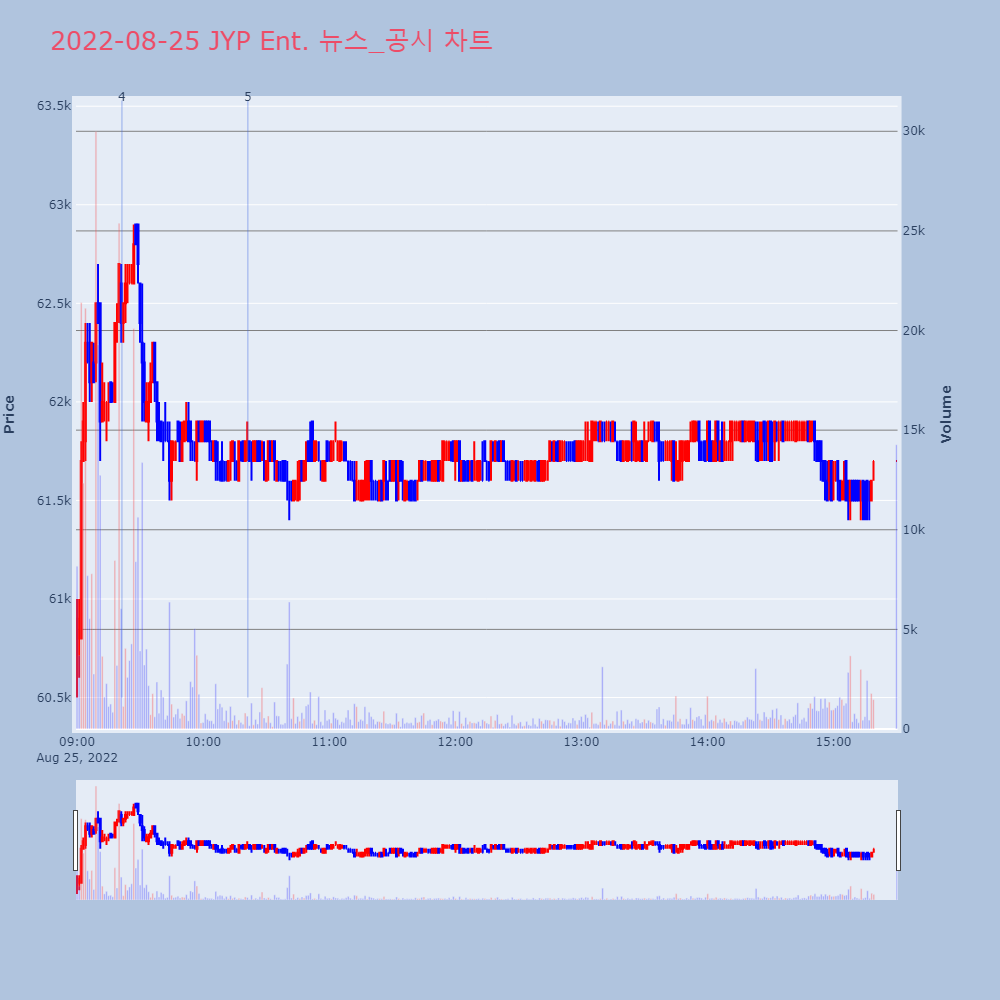 | 2 | [마켓줌인] JYP Ent. 탄탄한 라인업으로 주가 레벨업?진행 : 예민수 머니투데이방송 앵커출연 : 박주근 리더 | MTN | JYP Ent. | 2022-08-24 12:33:31 |