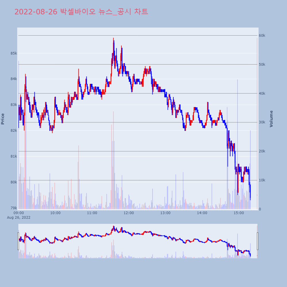 | 13 | [특징주] 박셀바이오, 혈액암 치료제 임상 중단 소식에 약세 제목 : [특징주] 박셀바이오, 혈액암 치료제 임상 중 | 인포스탁 | 박셀바이오 | 2022-08-25 13:41:00 |