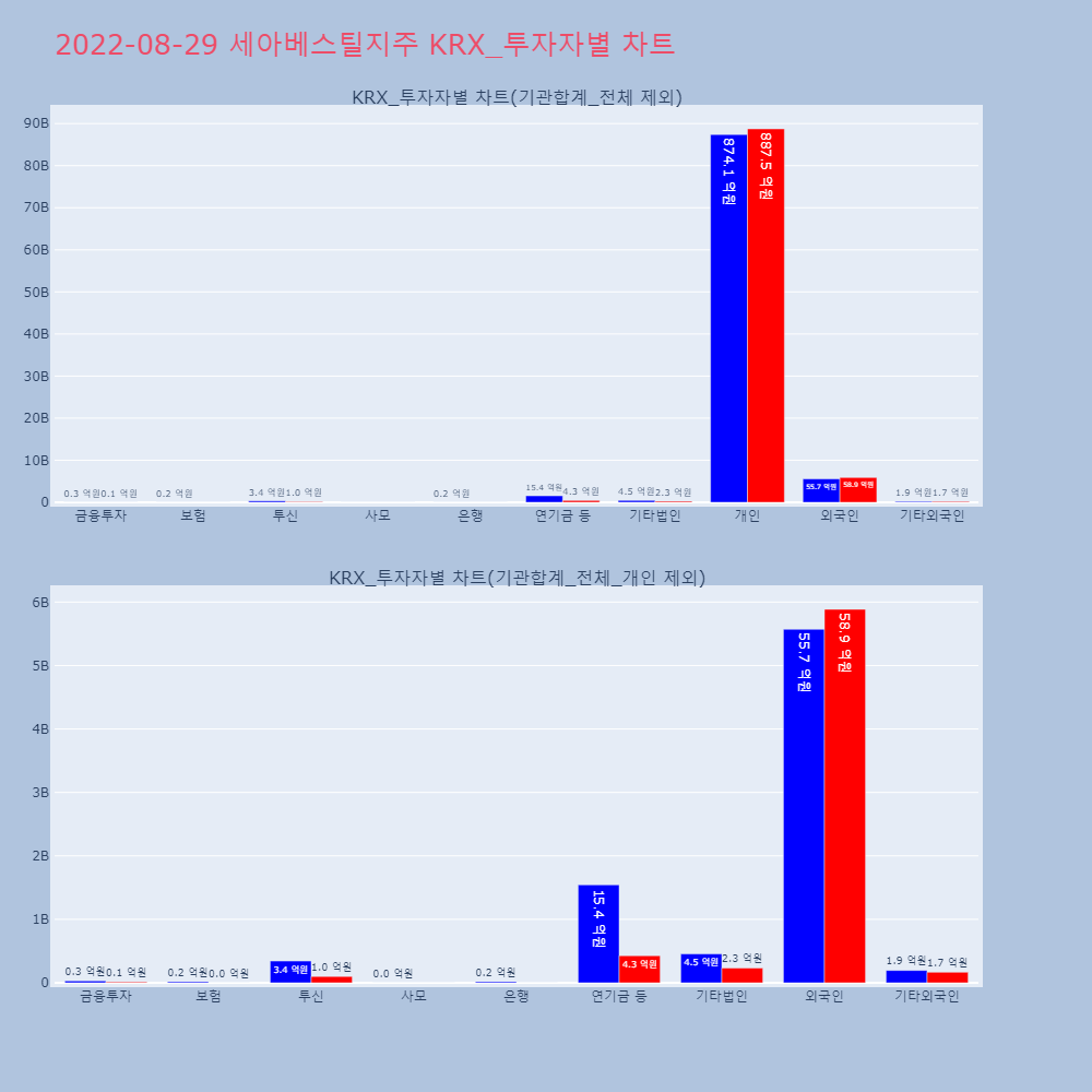 | 외국인 | 82,658 | 56,901 | -25,757 | 5,753,691,800 | 3,885,210,100 | -1,868,481,700 |