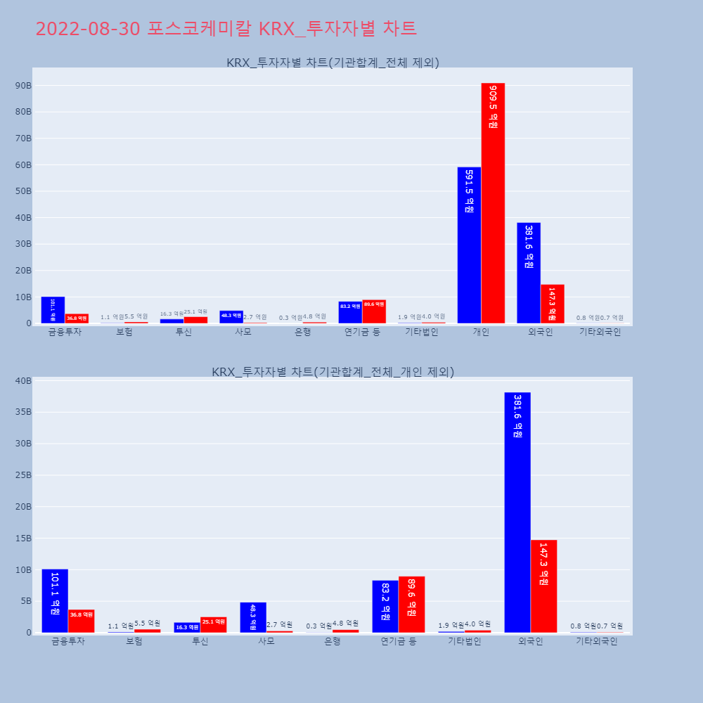 | 투자기관 | 거래량_매도 | 거래량_매수 | 거래량_순매수 | 거래대금_매도 | 거래대금_매수 | 거래대금_순매수 |