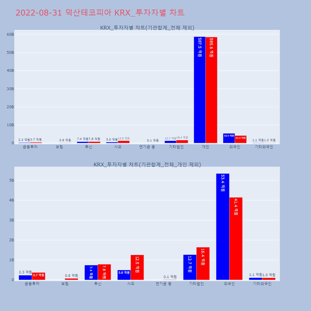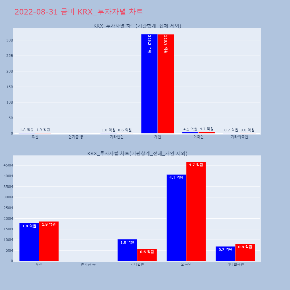 | 투자기관 | 거래량_매도 | 거래량_매수 | 거래량_순매수 | 거래대금_매도 | 거래대금_매수 | 거래대금_순매수 |