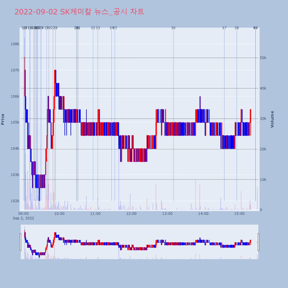 | 41 | [특징주] SK케미칼, SK디스커버리의 주식 공개매수에 11% 급등(종합)[특징주] SK케미칼, SK디스커버리의 주식 공개매수에 | 연합뉴스 | SK케미칼 | 2022-09-02 15:39:24 |