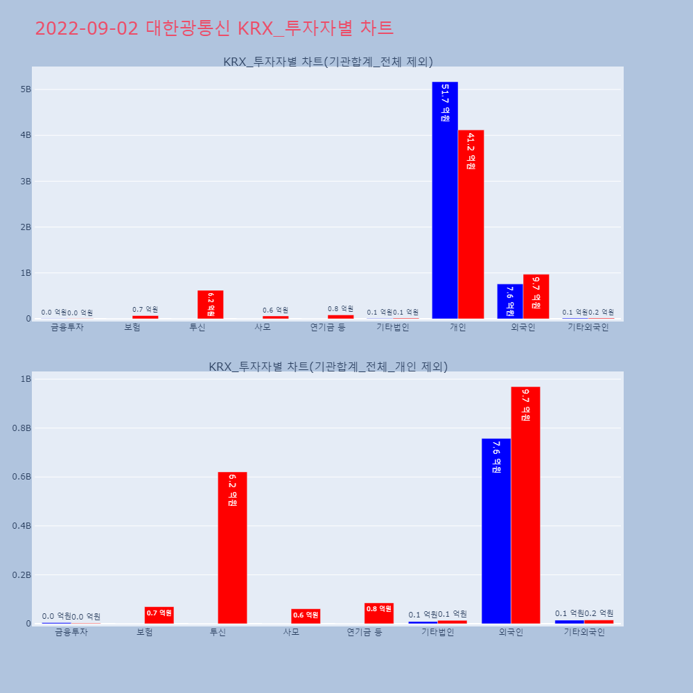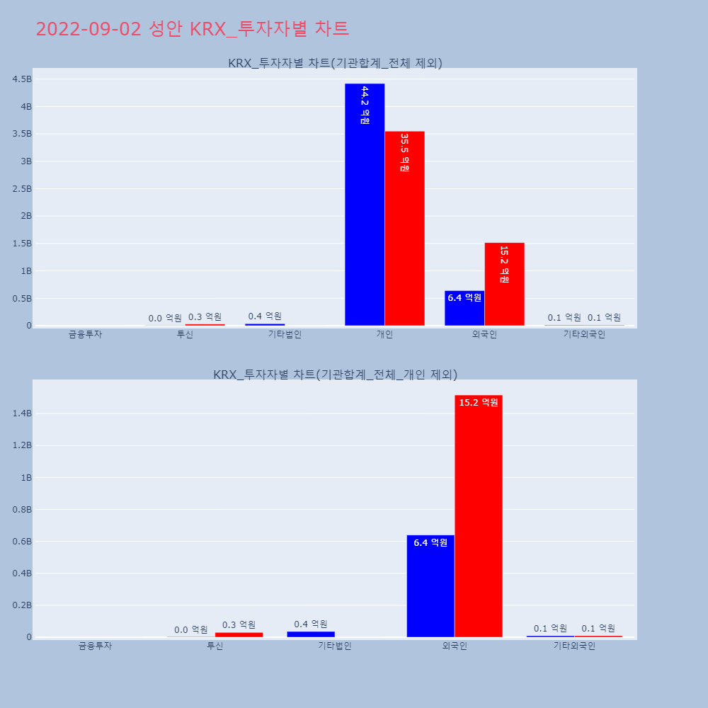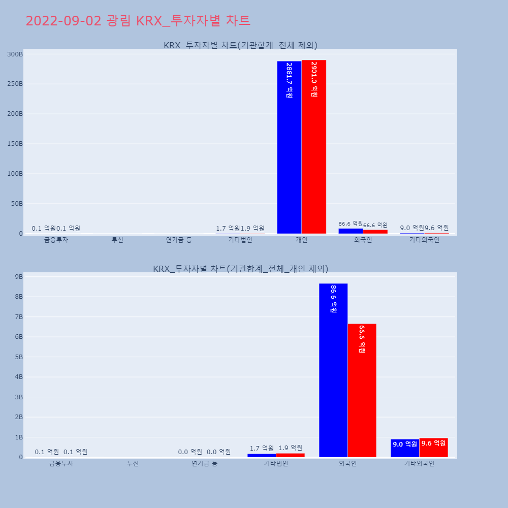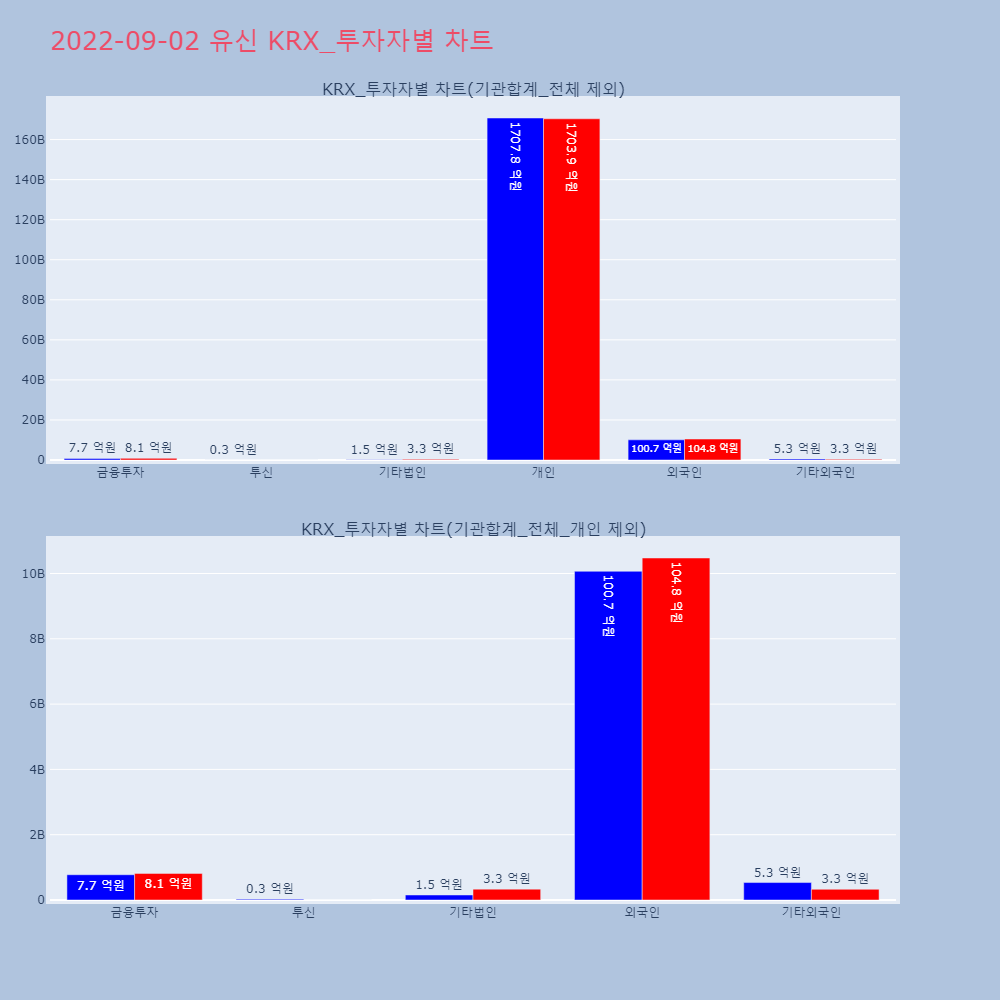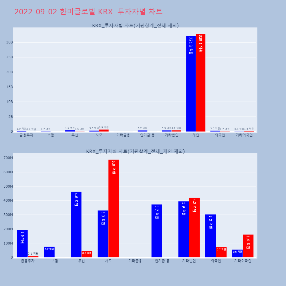 | 투자기관 | 거래량_매도 | 거래량_매수 | 거래량_순매수 | 거래대금_매도 | 거래대금_매수 | 거래대금_순매수 |