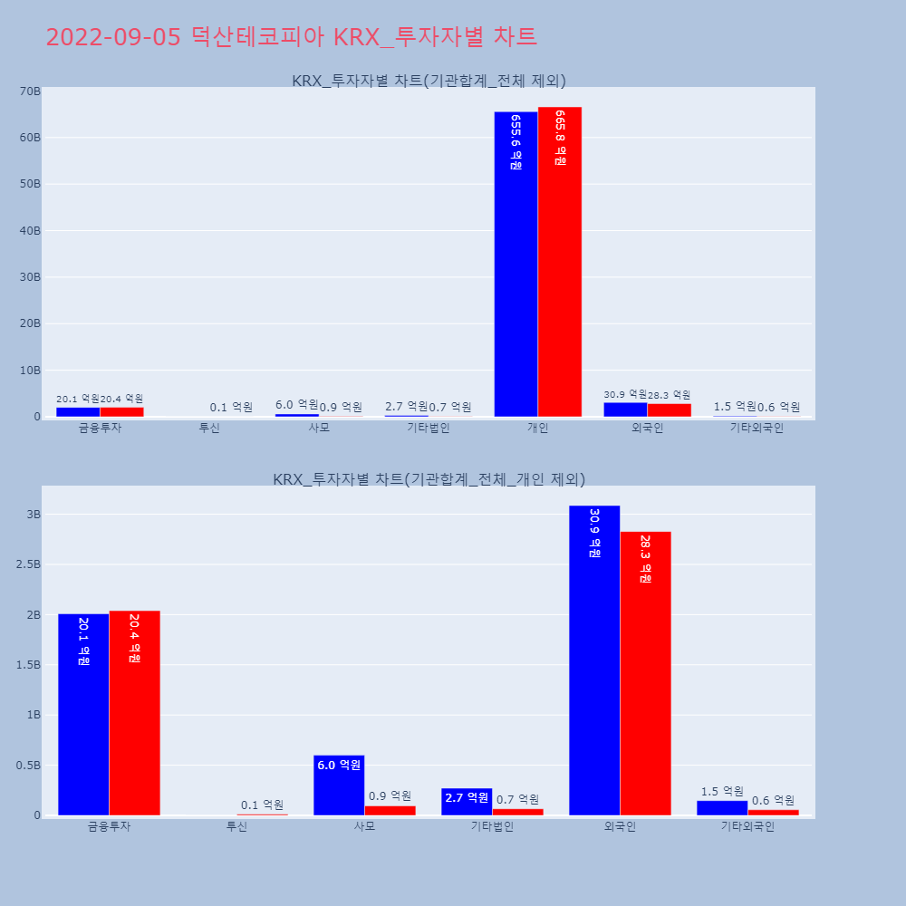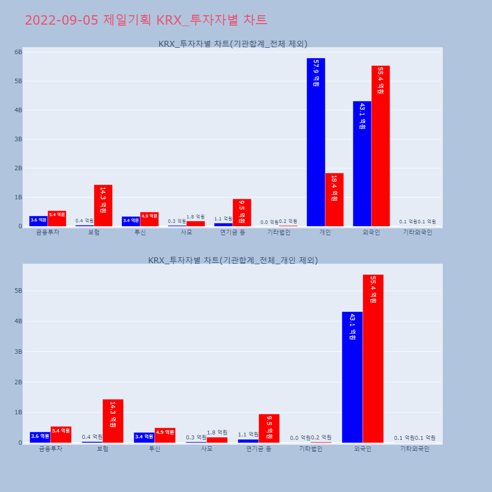 | 투자기관 | 거래량_매도 | 거래량_매수 | 거래량_순매수 | 거래대금_매도 | 거래대금_매수 | 거래대금_순매수 |