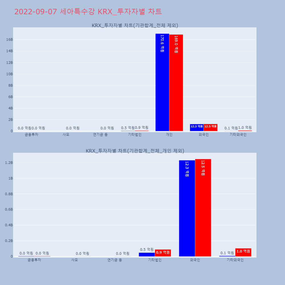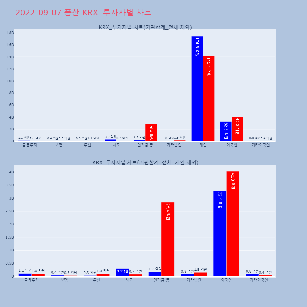 | 투자기관 | 거래량_매도 | 거래량_매수 | 거래량_순매수 | 거래대금_매도 | 거래대금_매수 | 거래대금_순매수 |