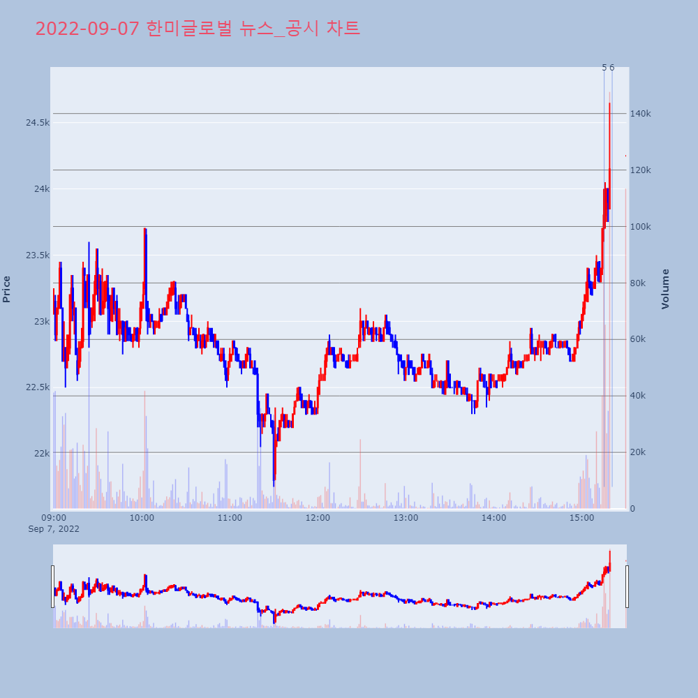 | 6 | '한미글로벌' 52주 신고가 경신, 단기·중기 이평선 정배열로 상승세◆ 차트 분석- 단기·중기 이평선 정배열로 상승세 | 한경/증권 | 한미글로벌 | 2022-09-07 15:20:45 |