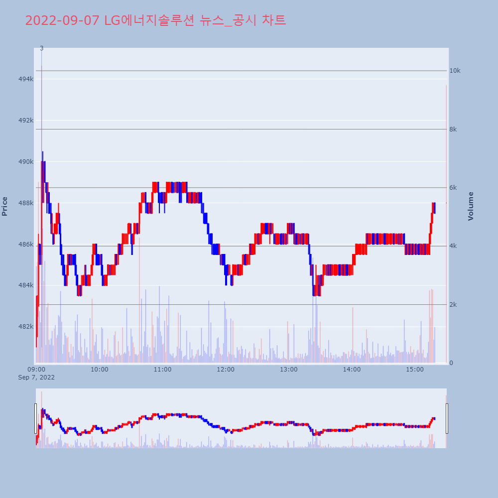 | 3 | [업종 대표주] 전기제품: LG에너지솔루션 +0.41% 출발전기제품 업종 대표주인 LG에너지솔루션이 0.41% 상 | 조선경제 | LG에너지솔루션 | 2022-09-07 09:05:01 |