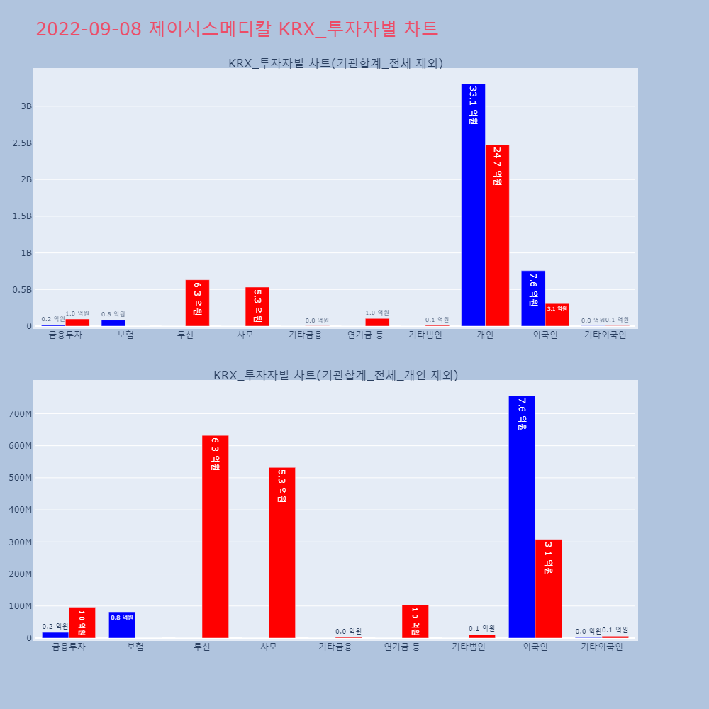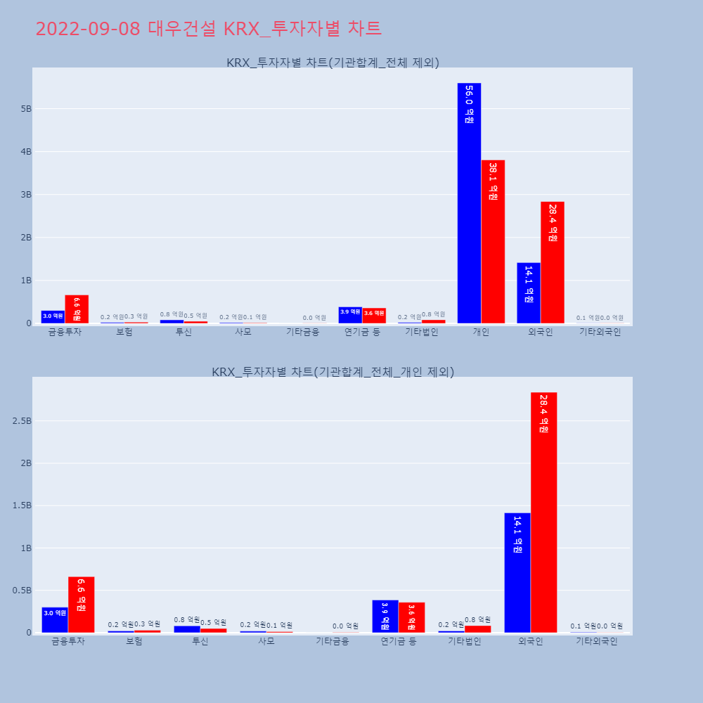 | 투자기관 | 거래량_매도 | 거래량_매수 | 거래량_순매수 | 거래대금_매도 | 거래대금_매수 | 거래대금_순매수 |